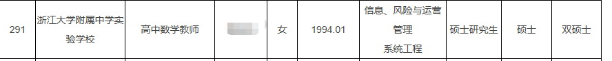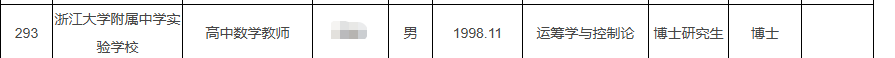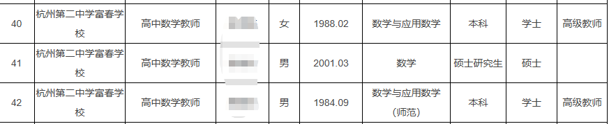 浙江大学附属中学实验学校新招聘的数学老师实力也很强,一位老师是博士毕业,还有一位老师是双硕士,数学、物理,生物都有高级教师。