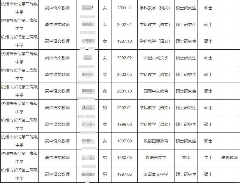 杭州源清第二高级中学则有35位新老师,地理、历史、物理都有高级教师。