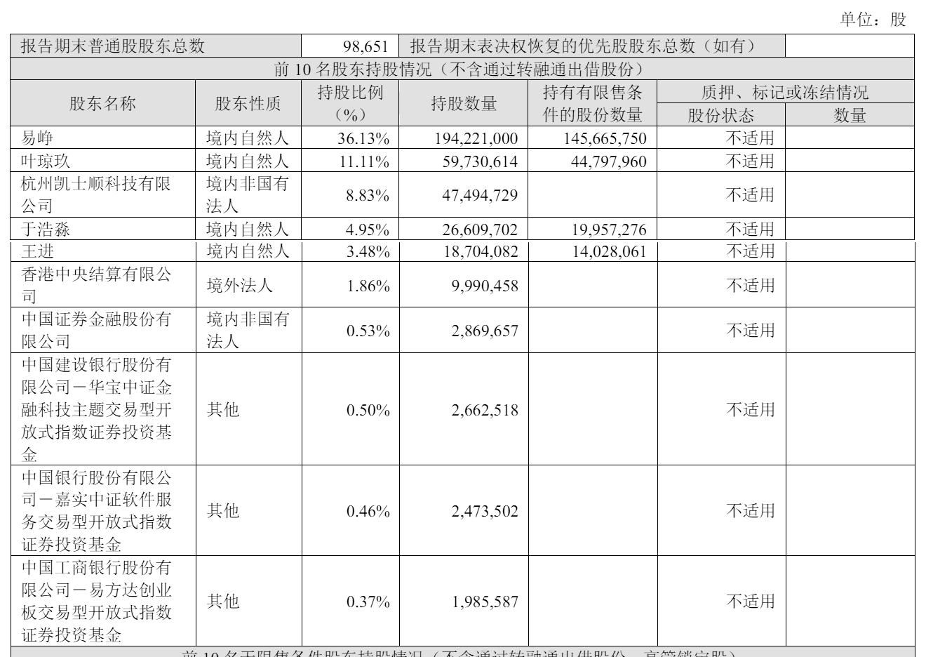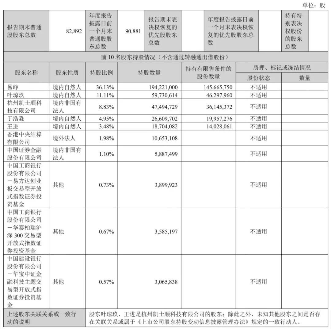 截至2025年12月31日,易峥持股36.13%,叶琼玖持股11.11%,杭州凯士顺科技有限公司持股8.83%,于浩淼持股4.95%,王进持股为3.48%;