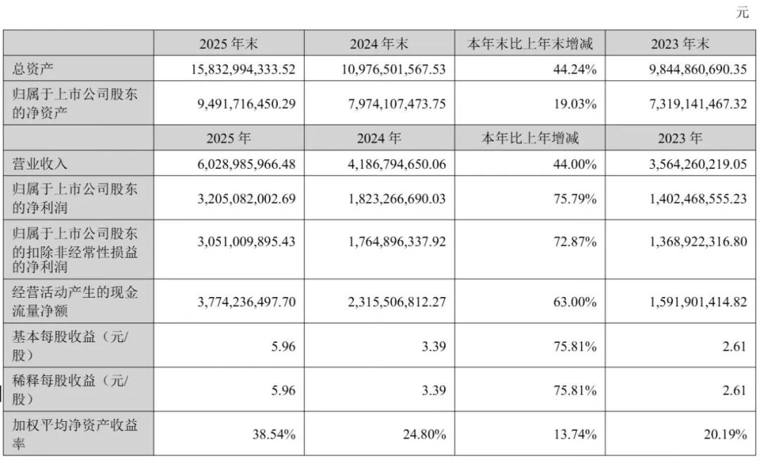 同花顺2025年净利为32亿元,较上年同期的18.23亿元增长75.79%;扣非后净利为30.51亿元,较上年同期的17.65亿元增长72.87%。